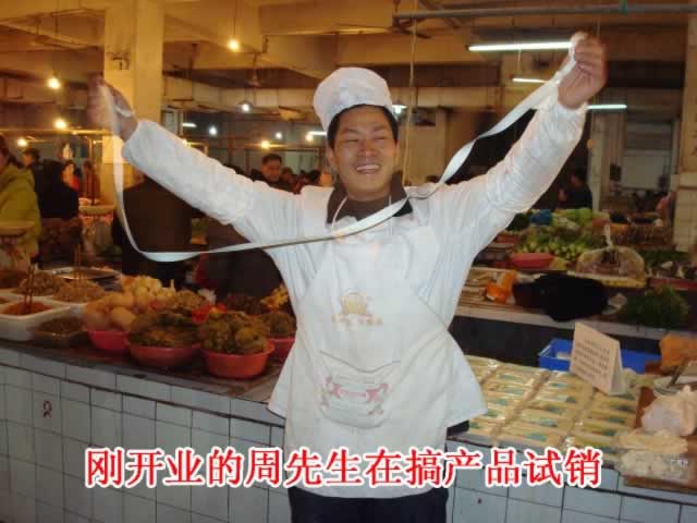 春節一過,正月十七,王剛的一品鮮正式開工。因當地菜市場門面房緊缺,他在靠城邊的地方有一個自家的院子,生產就放在這里,妻子、侄女婿、嫂子齊上陣,每天早上加工,或者每天晚上九點后加工,第二天一大早就送往各個超市,他現在光超市就有二十幾個代銷點,有時給一家超市供貨了,旁邊的超市就會主動打電話來要他送貨過去。他還把一品鮮打進了當地大的一家火鍋店——傻大姐火鍋店。為了進一步擴大生產,07年后半年在當地百富市場租了合適的門面,下一步集中精力開發飯店這塊大市場。談到這里,王剛自信的說:“謂南是一個中小城市,比總部滎陽面積大人口多,我明年的產銷量一定會趕上總部?!?nbsp;