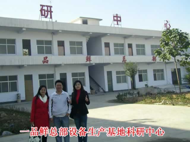 隨后,王威又開車把我們帶到處于市郊的王威一品鮮生產基地。在這個占地面積25畝的鄭州一品鮮食品機械制造廠里,一座占地兩層樓、使用面積近平米的科研中心也已投入使用,其非凡的實力引起筆者的很大感慨,數百萬元的科研投入,大手筆藍圖規劃,完善的加盟服務體系,難怪會成為加盟商趨之若鶩的黃金項目。