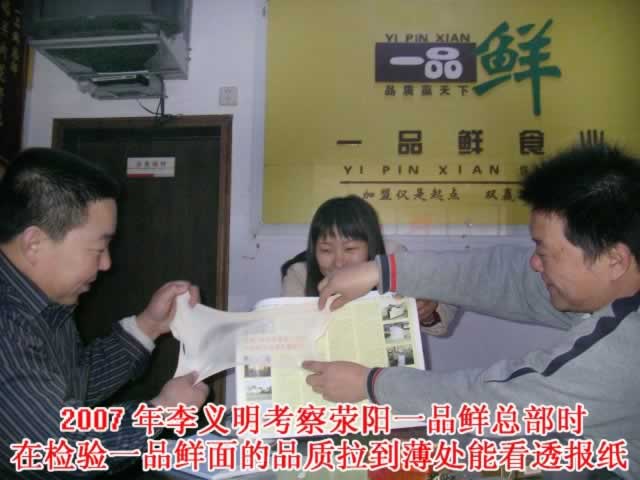 于是2007年11月,李益明千里迢迢趕往鄭州考察,在選項考察時還遇到了我們第三次去一品鮮采訪的記者李曉光。他和李記者聊了很多,幾乎是跟著采訪足跡考察的項目。從鄭州學習回來,他就著手選門面,在這座邊塞小城扯起“一品鮮”的大旗。