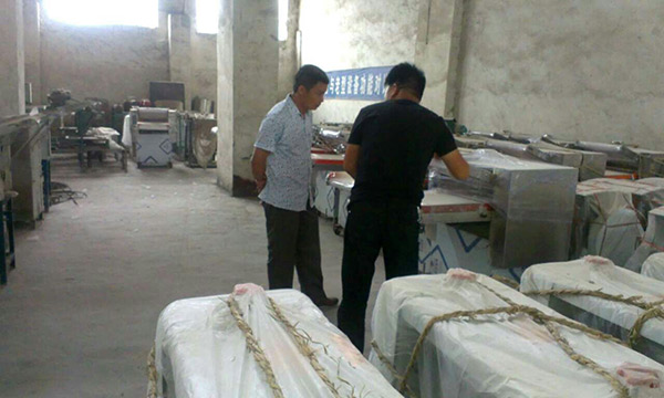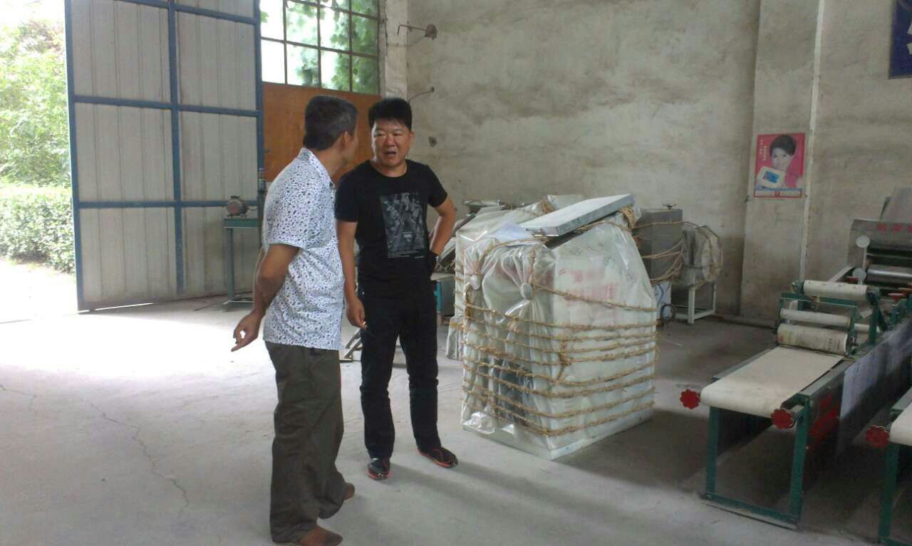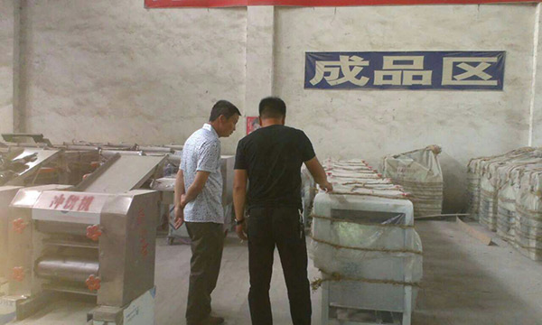 王總帶領客戶觀看燴面機的工作步驟并耐心和客戶交談